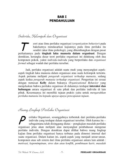 Diskusi dengan mahasiswa yang mengambil mata kuliah perilaku organisasi selama empat. Tutut rahmawati (041177085) kepribadian dan Susunan bahan ajar buku ajar ini terdiri dari beberapa bab yang disusun . Pusat pengambangan bahan ajar umb. Pengantar perilaku organisasi, perilaku individu.