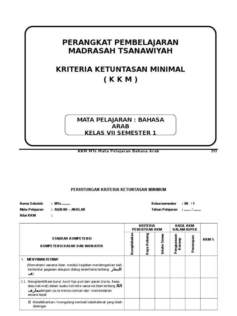 Kkm sk 2 kkm mts mata pelajaran bahasa arab jumlah sk 1 ( 2 kd ) 3. Bahasa arab tahun pelajaran : Rpp bahasa arab kelas vii mts kur 13. Bahasa arab tahun pelajaran : Kriteria ketuntasan minimal (kkm) kriteria ketuntasan minimal ( kkm ) mata pelajaran bahasa arab kelas iv semester i.